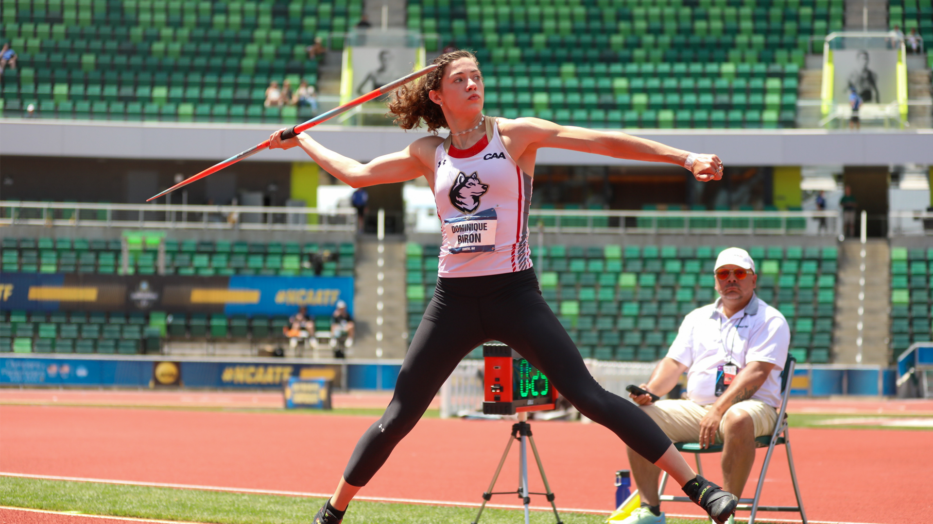 Northeastern senior Dominique Biron earned honorable mention All-America honors as she concluded her two days competing in the heptathlon at the NCAA Track and Field Championship on Saturday at Historic Hayward Field.