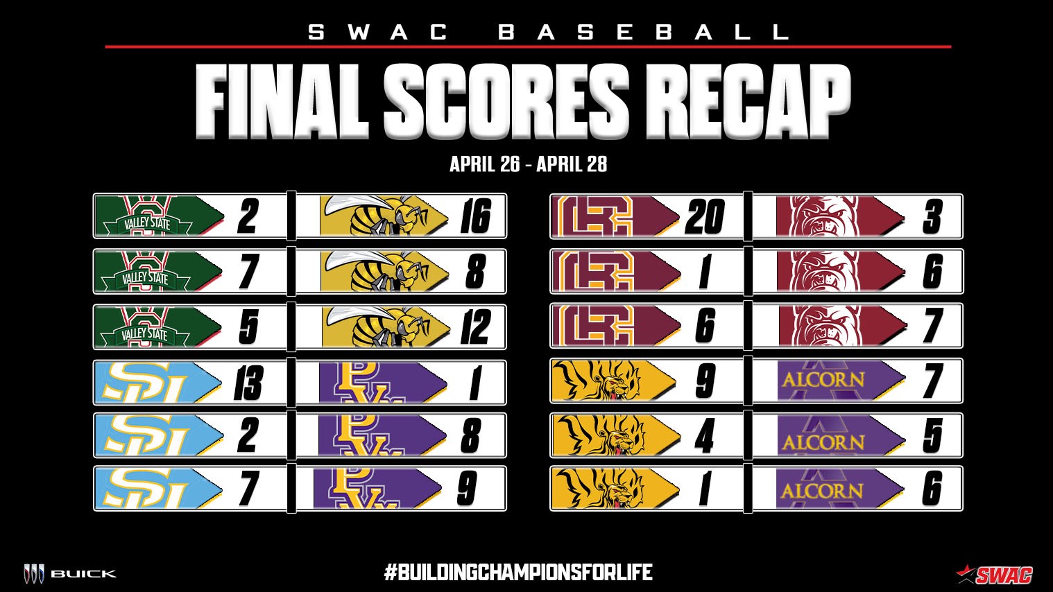 Buick SWAC Baseball Final Scores: Apr. 26-28