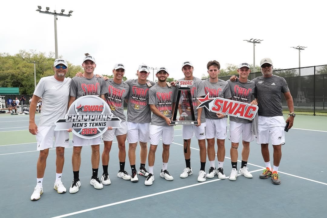 The Alabama State Hornets defeated the Jackson State Tigers 4-0 on Sunday at the 2025 SWAC Men’s Tennis Tournament.