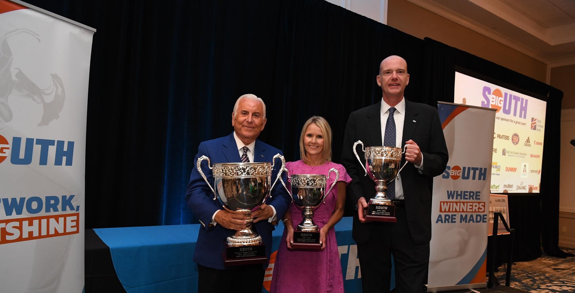 ISLE OF PALMS, S.C. (www.BigSouthSports.com) – High Point University has been awarded the Big South Conference’s George F. “Buddy” Sasser Cup Trophy for the 2023-24 athletic season, marking the school’s third consecutive year achieving the top overall athletic season in the Big South. The Cup was presented to High Point Thursday evening at the league’s annual Spring Meetings Awards Banquet, which was held at the Wild Dunes Resort in Isle of Palms, S.C. The Panthers also clinched the league’s Women’s and Men’s All-Sports trophies, becoming just the third member institution to sweep all three awards.