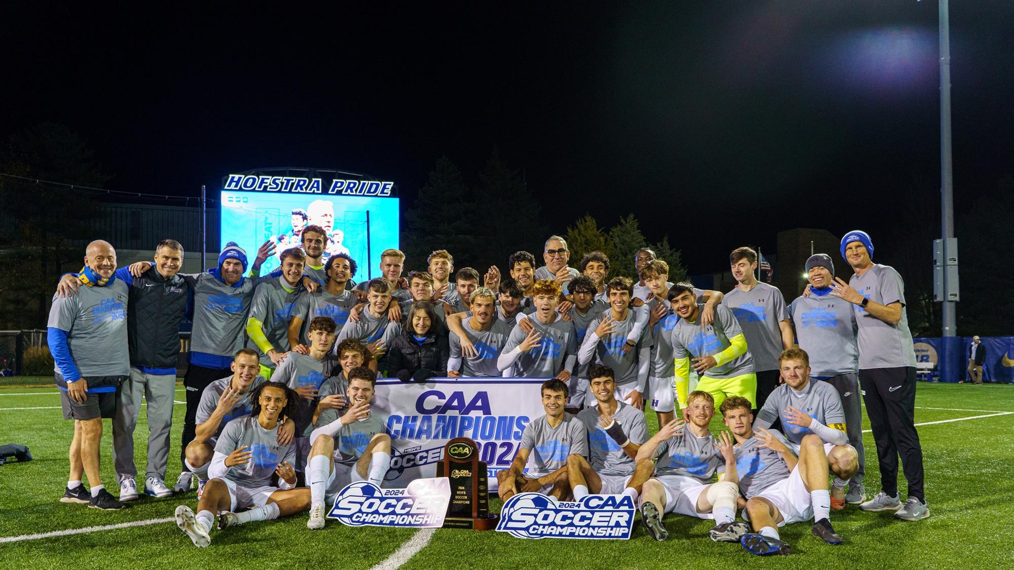 HEMPSTEAD, N.Y. (Nov. 16, 2024) - An own goal proved the difference maker, earning No.4 Hofstra its fourth-straight CAA Men’s Soccer Championship over No. 6 UNCW. The 1-0 result ties the Pride for the most conference titles with William & Mary and JMU at eight.