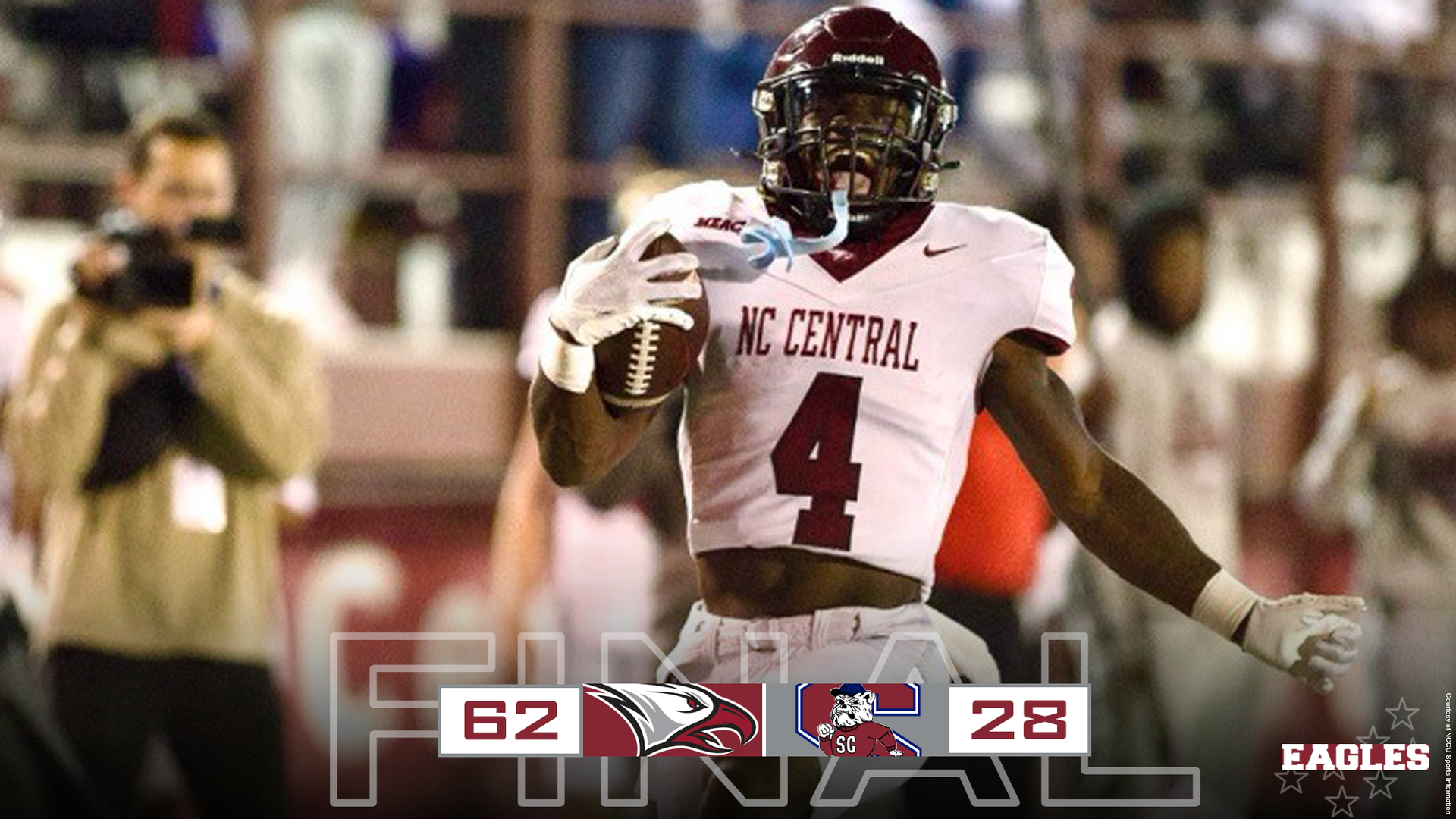 DURHAM, N.C. - Thursday night football did not disappoint as the 2022 Celebration Bowl Champions No. 10/13 Eagles of North Carolina Central commanded the field in a 62-28 victory over the 2021 Celebration Bowl Champions the Bulldogs of Soth Carolina State.