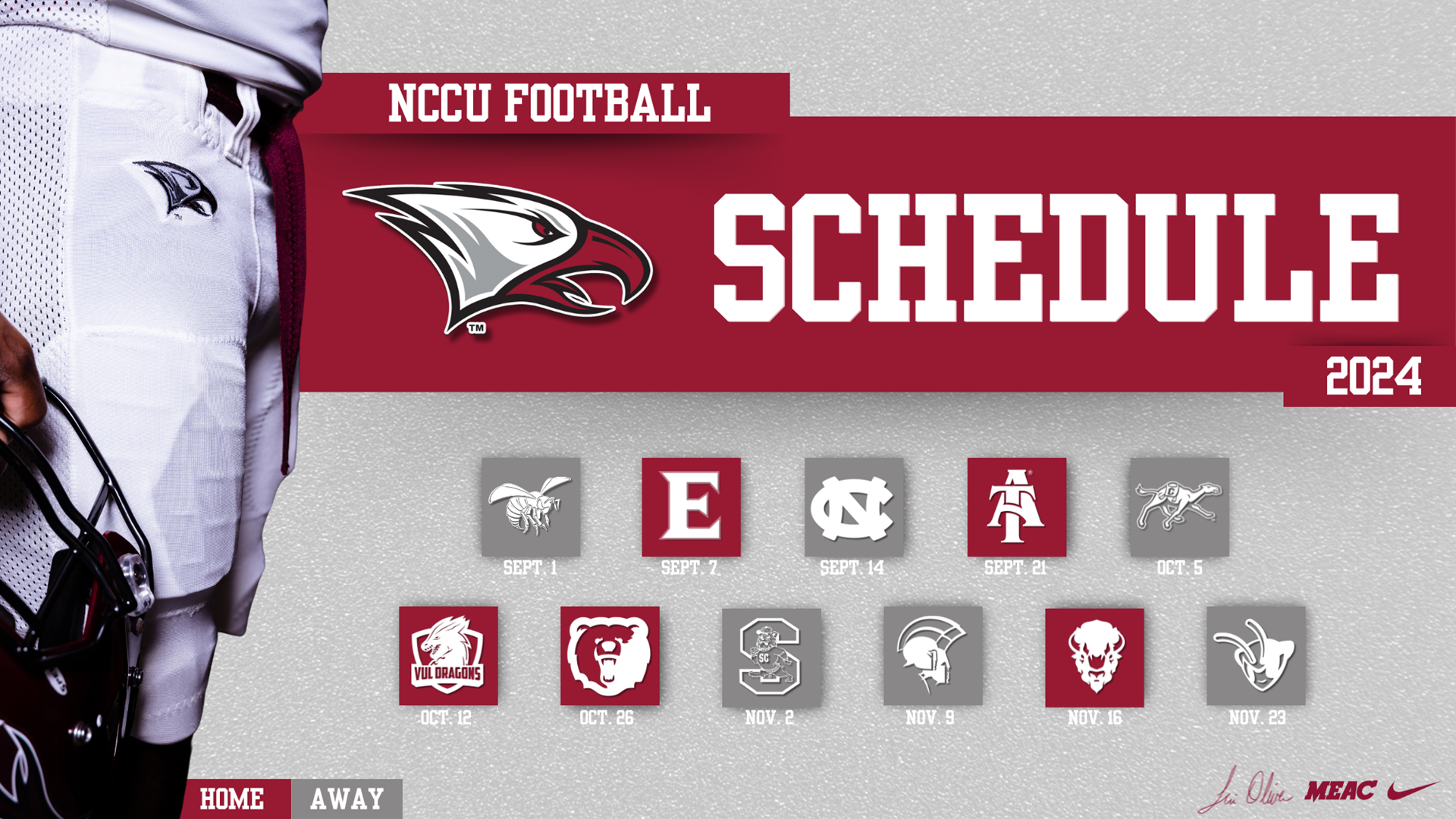 DURHAM, N.C. – North Carolina Central University, winners of 19 games over the past two seasons, unveiled its 2024 football schedule on Wednesday.