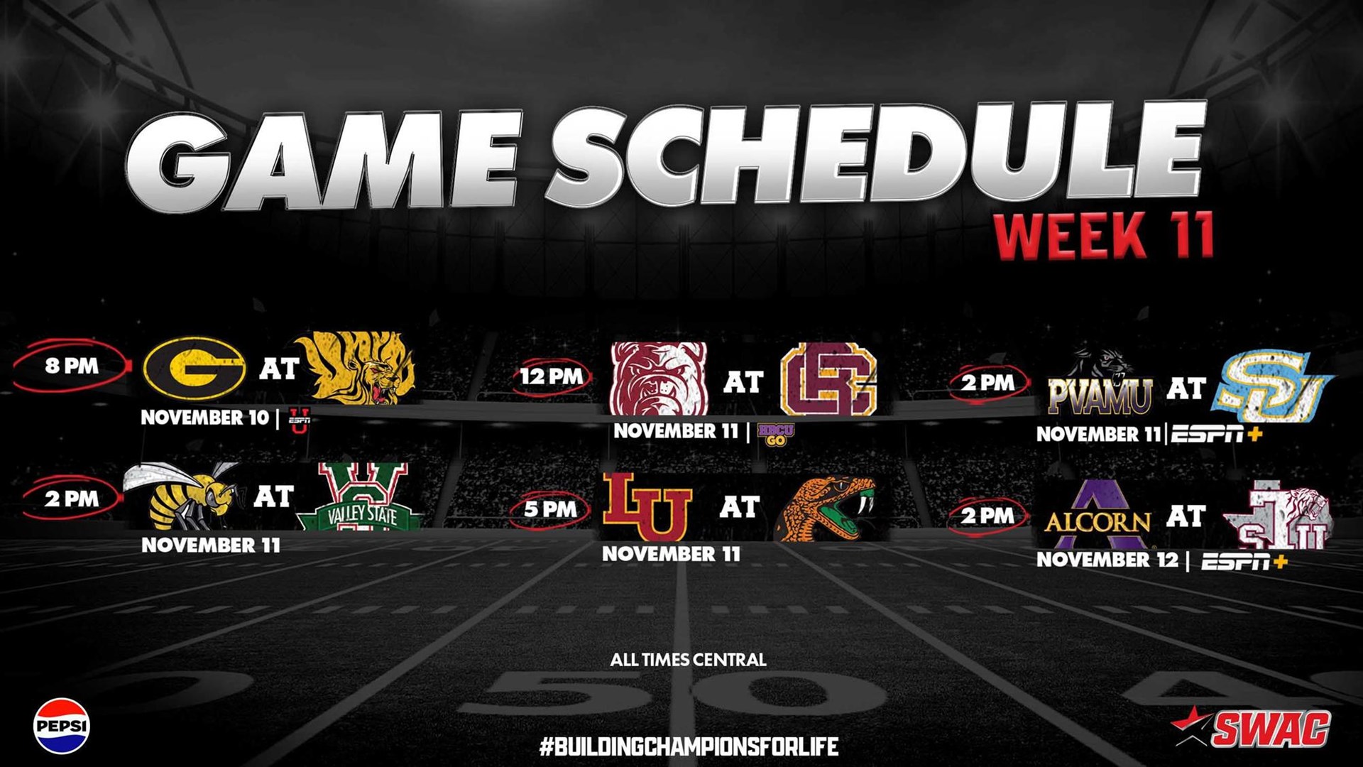A total of six games highlight week eleven of regular season competition in the SWAC