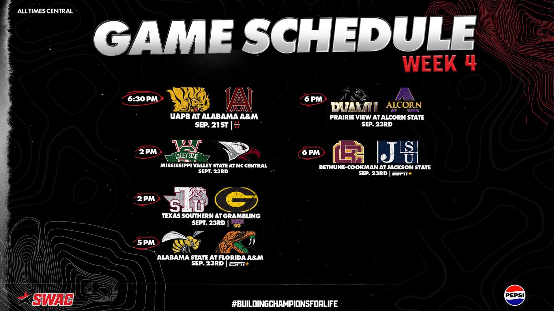 A total of six games highlight week four of regular season competition in the SWAC