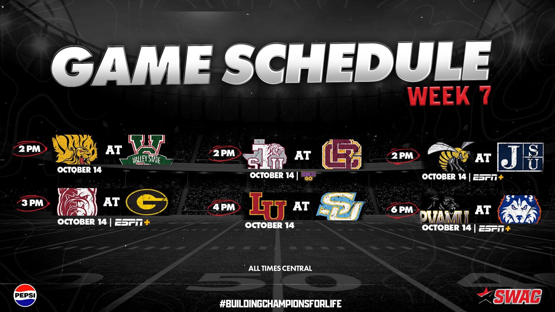 A total of six games highlight week seven of regular season competition in the SWAC